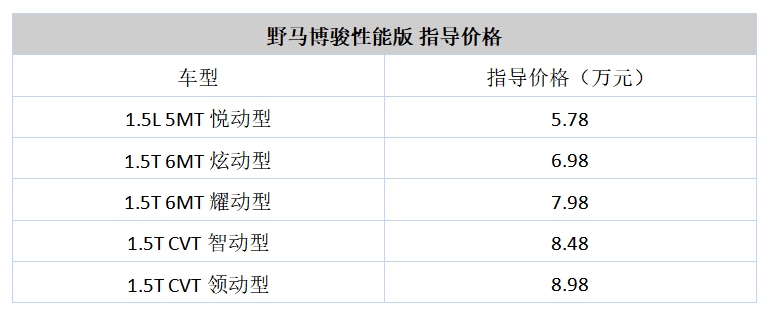 7月19日,野马博骏性能版正式上市,新车共推出5款配置车型,分别搭载1.5L和1.5T两种动力,且全系车型均满足国六b排放标准,售价区间为5.78-8.98万元。