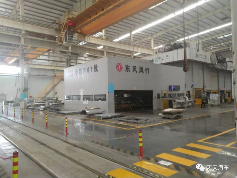 首先来看下冲压车间,柳东冲压车间具有两条全自动化生产线,PV1线由总吨位为5600T的机械压力机、7台FANUC六轴机器人、自动清洗机、涂有机集成;PV2线由四台总吨位为5400T的机械压力机、3台ABB七轴机器人、3台ABB六轴机器人、自动清洗机集成,具备年产量40万台乘用车车身的生产能力。