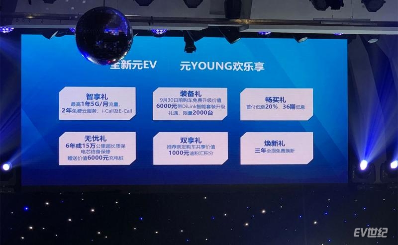 伴随着元EV360的上市,比亚迪还为用户准备了六重好礼。包含智享礼、装备礼、畅买礼、无忧礼、双享礼以及焕新礼。其中无忧礼包括6年15万公里超长质保,电芯终身保修以及价值6000元的充电桩。畅买礼包括首付低至20%、36期低息。