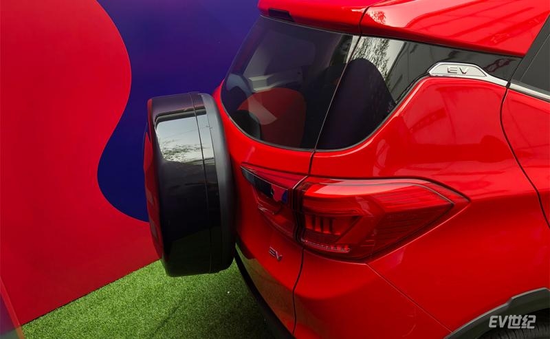车尾部分是元EV最有意思的地方,外挂式的备胎让这辆小车显得个性时尚,尤其是年轻消费者,面对这样的设计,真的无法拒绝。