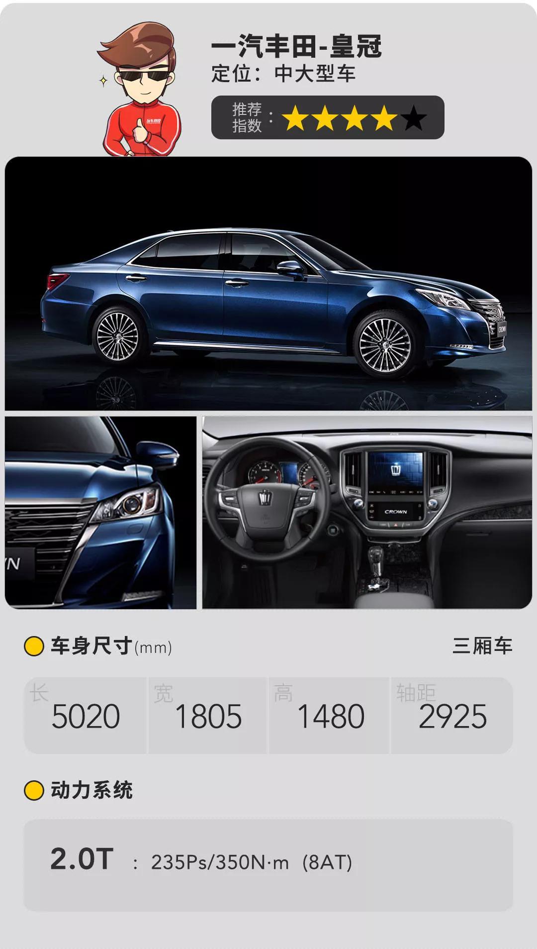 1964年,第一台丰田皇冠以进口的身份进入中国,彼时它是亚洲最好的量产豪华车,对标奔驰和宝马,也是从彼时开始,皇冠成功塑造了高端豪华车的形象。现款车型放下了身段,售价定在25.08-37.48万元,已经下探至迈腾和天籁的水平,并且目前普遍有2万元左右的优惠,对一部轴距达2925mm的行政级座驾来说可以用“超值”形容。