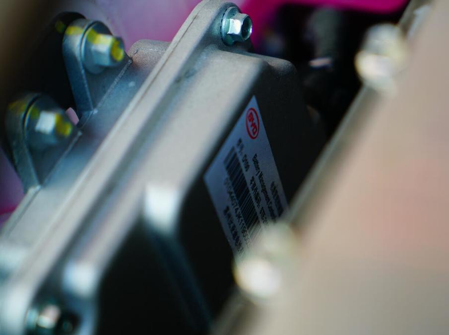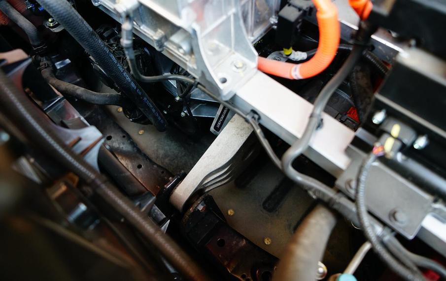 上图为拆除了原车配置的防尘罩后的电驱动细节特写。