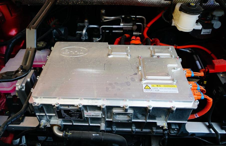 上图为唐EV四驱版搭载的“3合1”高压用电系统总成特写。