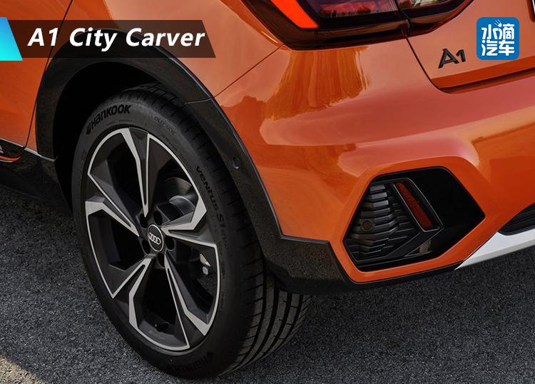需要提及的是,奥迪A1 City Carver升高的40mm中有35mm来自于悬架,另外5mm则来自于更大尺寸的轮毂。