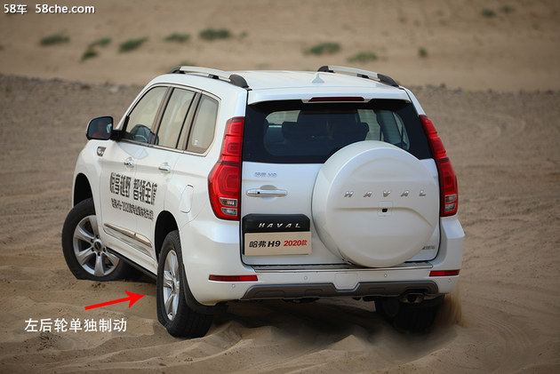 接下来说说越野装备上的升级,哈弗H9 2020款新增了前桥和后桥的电子控制差速器锁,供应商为伊顿。后桥差速锁随时可以锁止,而前桥差速锁必须在挂入低速四驱模式时才可以手动锁止。当两个差速锁同时锁止,每个车轮都将获得25%的动力,4个车轮同步转动。