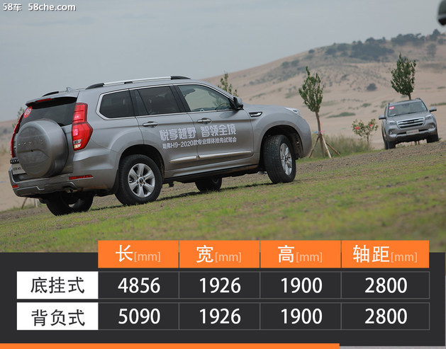 从定位来看,哈弗H9 2020款仍然是一款不折不扣的硬派越野车,其具备非承载式车身(有独立大量)、低速四驱等典型特征。尺寸上仍然保持了与现款一样的数据,并且仍然区分底挂式和后背式备胎两种造型。