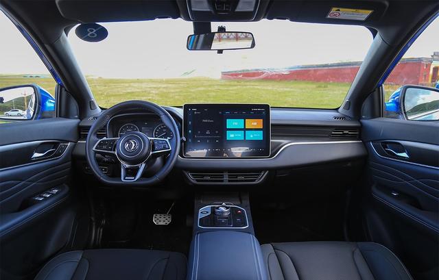 风光580Pro内饰整体风格比较简洁,线条和层次感把握的很好,大面积的软性材质和碳纤风格的装饰也点缀的很到位,虽然谈不上多豪华,但是看上去第一眼让人感觉很舒服。全新内饰最吸引车叔眼球,绝对是中间这块多媒体车机屏幕。