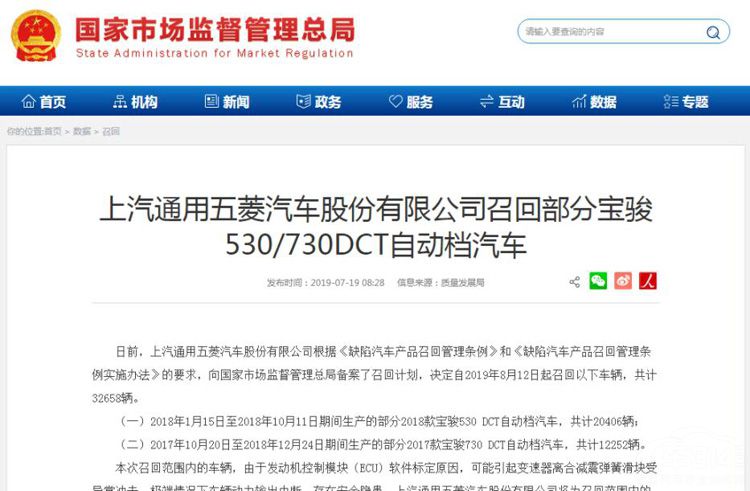 而就在不久之后,宝骏再次发布召回计划,表示预计8月份召回32658辆汽车,其中包括2018年1月15日-10月11日期间生产的部分2018款宝骏530 DCT自动挡汽车,共计20406辆;2017年10月20日至2018年12月24日期间生产的部分2017款宝骏730 DCT自动挡汽车,共计12252辆。而召回原因如出一辙,还是ECU软件标定问题。