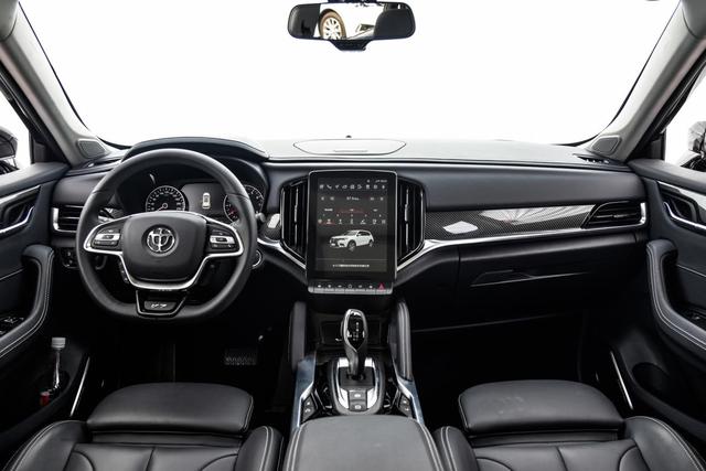 中华V7的内饰以简单为主,主要通过用料来烘托出它的豪华感,中控台部分大多为仿皮和搪材料,并用饰板进行装饰,但装配工艺一般,质感欠佳。10.4英寸的中控大屏把空调等控制键全部集中在了一起,可以语音控制、导航、手机互联等。在高配车型上,有车道偏离预警、车道辅助、HUD抬头显示、电动尾门等功能。