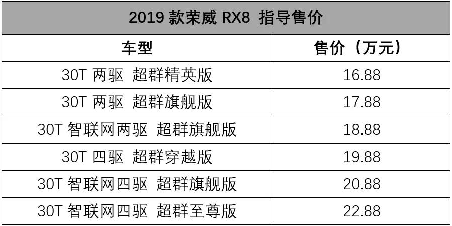 上汽荣威 RX8 2019款