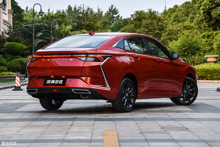 车身侧面最吸睛的要属尾部两侧的镀铬装饰条了,造型同样很夸张,并且与前脸形成了很好的呼应。车尾部分采用了双边共双出式排气布局,并且还配备了贯穿式尾灯。此外,东风风神奕炫还采用了溜背式的造型设计,意图非常明显,这是一款主打年轻消费者市场的车型。