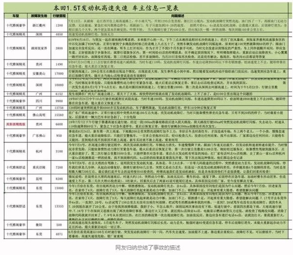 涉事车型十代雅阁出现众多高速失速的案例,发动机故障灯亮,动力突然丢失,目前该现象主要集中于搭载本田1.5T涡轮增压发动机的燃油版车型上,由于失速故障发生突然且可通过重启恢复正常,加上4S店未能检测出故障码,导致问题不了了之。