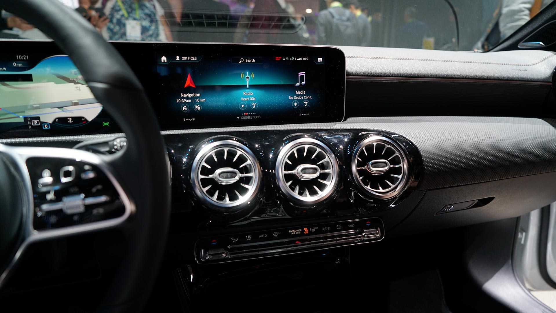 选装配置方面,奔驰CLA级可以需安装上两块10.25英寸高清液晶屏(标配7.0英寸),手势控制也是技术套件的一部分;同时,带实时路况信息的导航系统、Burmester环绕式车载音响系统也都是选装列表中的一员。