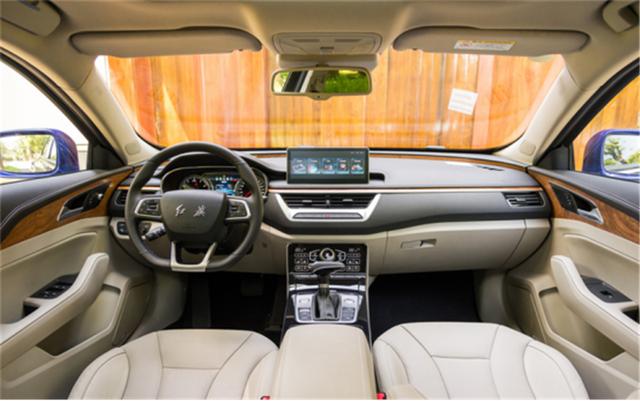 博瑞的内饰设计风格比较稳重,木纹饰板以及皮质材料的覆盖提升了车内的档次。