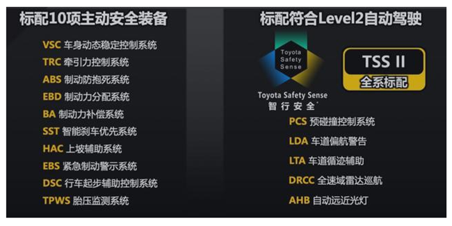 除此之外,最新一代丰田智行互联系统和Toyota Safety Sense智行安全系统在新车上均有搭载。更多配置上,三辐式多功能方向盘、2种座椅颜色搭配、10向驾驶位电动座椅、后排出风口、双2.1A充电接口(USB)等功能一应俱全。
