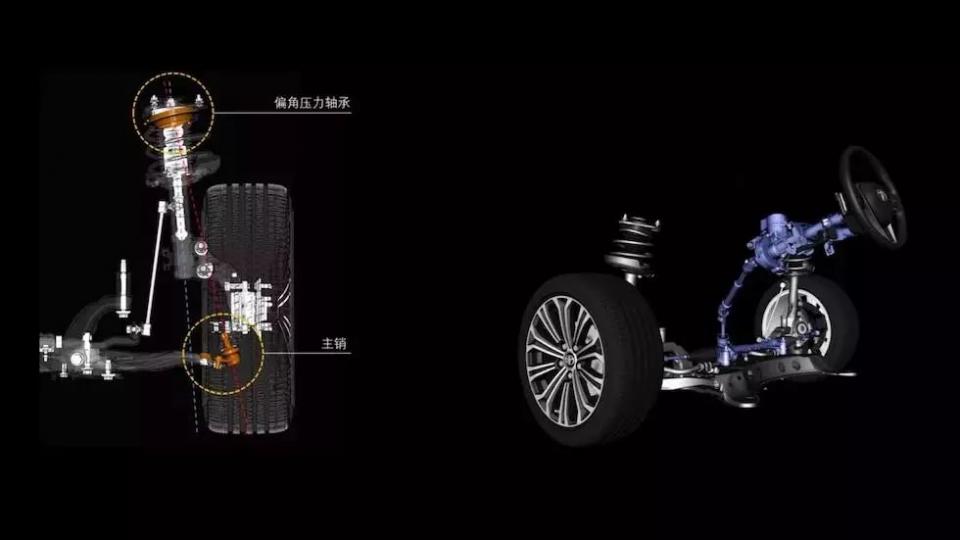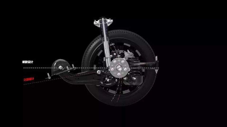 在前后悬挂的设计上也有了很大的提升,位于塔顶的压力轴承使用了偏角设计,使得轴承中心线和主销一致。这样转向操控更精准,阻尼也更均匀。