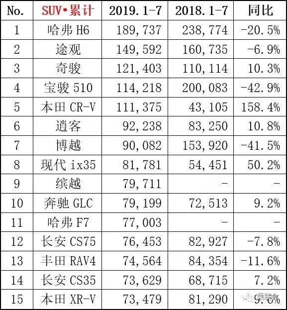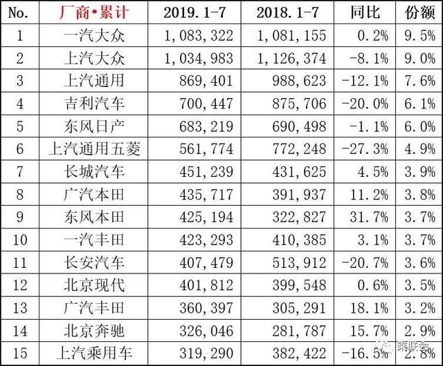 而前7个月销量前15名车企中,有近半数销量同比负增长,特别是前六名有五个同比负增长,可见今年整体车市形势仍不容乐观。