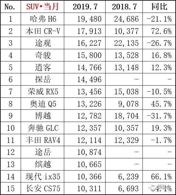 单月销量方面,虽然一些“老牌强队”销量下滑明显,但是也看到探岳、途岳 (配置|询价)、缤越等新车型开始发力,逐步登上了销量排行前列,另外奥迪Q5与奔驰GLC等豪华品牌SUV也显示出强劲增长势头。