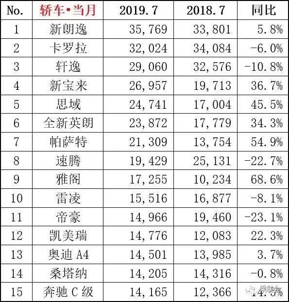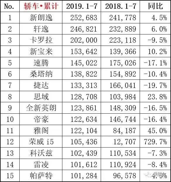 而在前7个月轿车累计销量数据中,新朗逸同样超过轩逸取得轿车销量榜首位置,但是榜单上多款车型1-7月份累计销量,与去年相比有两位数的跌幅,显然在车市不景气情况下,主动调整方是上策。