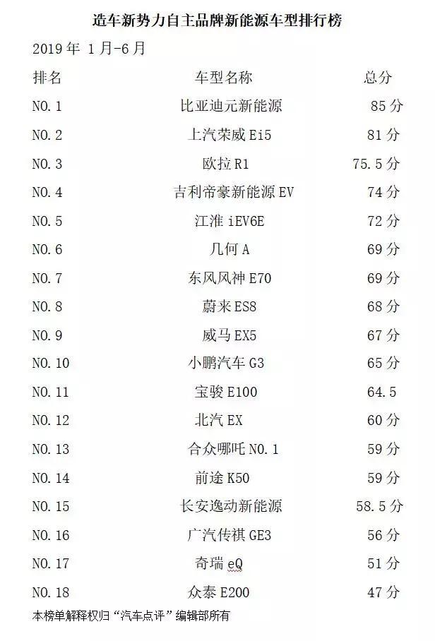 此外,虽说如今新能源汽车发展已成趋势,许多车企都盯住了这一块新兴领域,但其中也不缺乏浑水摸鱼的车企,当然也有发奋图强的车企,也有逆水行舟不进则退的。那么,此次车叔将针对自主品牌新能源车型进行逐一盘点。当然,车叔也制定了一套详细的打分规则加以评判。而经过半年的角逐,各家自主品牌新能源车型实力究竟如何,接下来车叔将进行详细分解。