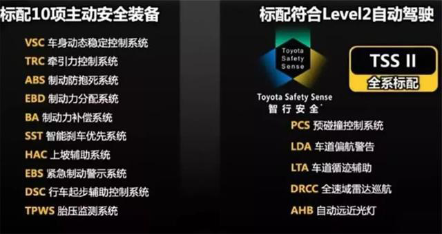 不过在新车在安全配置上进行了着重提升,比如全系标配8安全气囊,全系标配了第二代TSS丰田规避碰撞辅助套装,这是时下流行的智能驾驶辅助功能,包括带跟车行驶功能的车道保持辅助系统、带行人识别的预碰撞安全系统、多速段自适应巡航系统等。此外后悬挂升级成了双叉臂,对操控性,和舒适性有了提升很大。