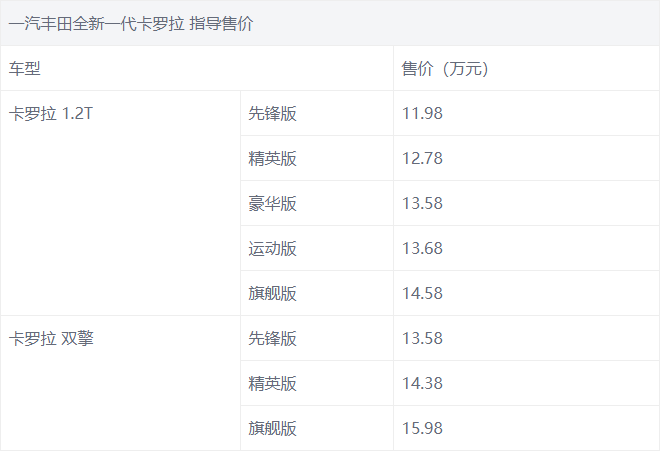 一个拥有拥有52年历史,历经11代传承,全世界150多个国家销售,全球累计销量超过4700万的车型,还拿下了吉尼斯世界纪录的全球汽车销量第一的称号。终于在昨晚上市了,他就是丰田卡罗拉,提供8款车型,新车官方指导价为11.98万-15.98万元。论起产品力,可以说是史上最好的卡罗拉了。