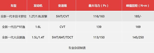 由于三款车型的发动机装载各有不同,整体的动力表现的衡量标准并不统一。如果以三车的中低配车型为例,搭载1.6L自吸发动机,最大马力139匹,峰值扭矩169牛·米的轩逸,表现会更加出色。往高配车型走的话,搭载1.4T涡轮增压发动机,最大马力150匹,峰值扭矩250牛·米的朗逸则更有优势。