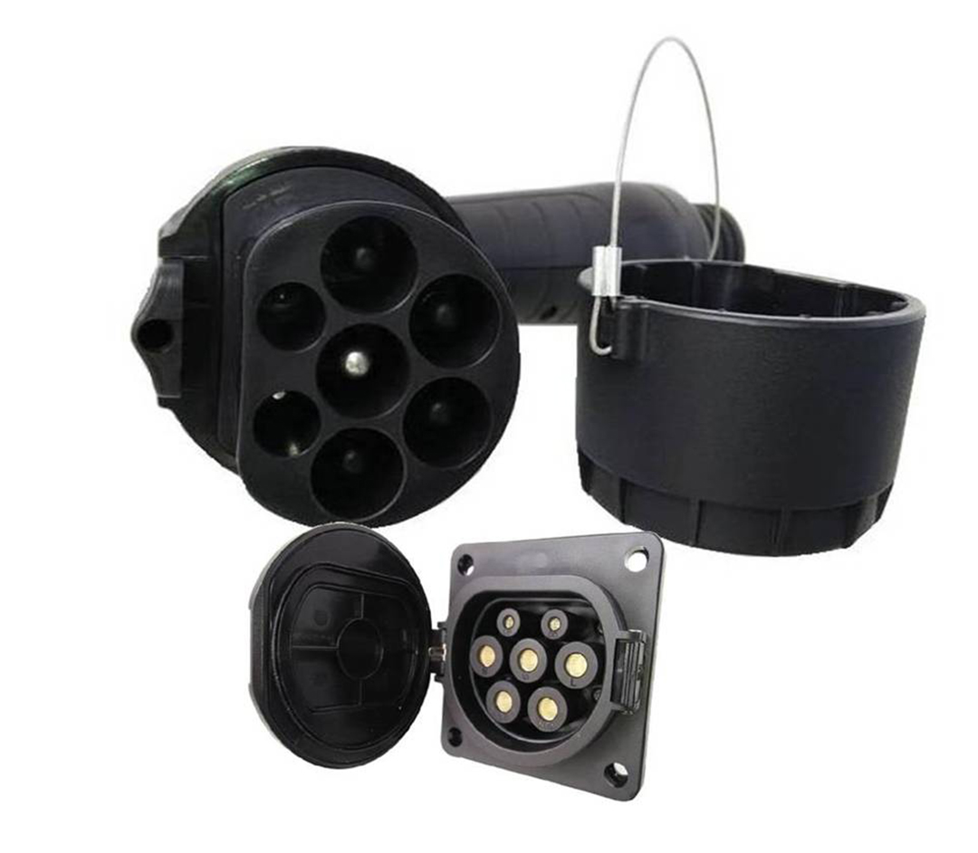 除此以外,充电枪上设有很多孔,除了电流流经的孔以外,在上方最短的两个孔有对接检测功能。只有当充电枪口完全闭合的时候才会接通电流;当拔出充电枪的时候,上方的检测部分也会最先断开连接,同时电流也会停止输出,这样的设计在很大程度上降低了触电的风险。