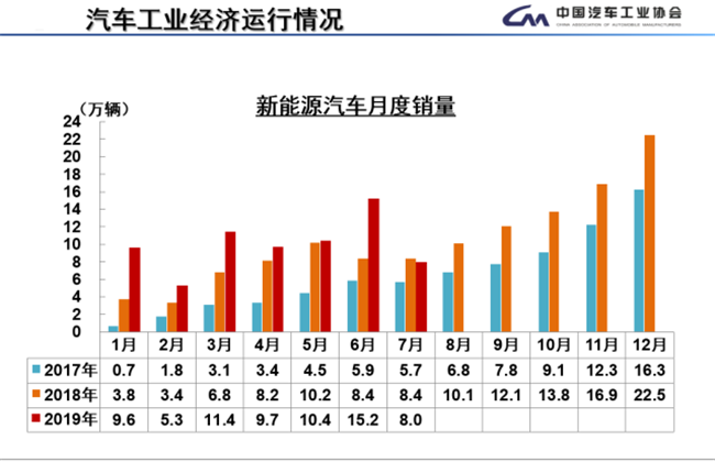 “为了上半年的销售任务,汽车厂商大多会在6月份冲业绩,到了7月份自然会回落,这也是行业规律。”一位要求匿名的新能源汽车从业者告诉《道哥说车》记者。而这一点,中汽协自身也早已预料到,并于今年7月下调了年初对于2019年汽车销量的预判。其中,中汽协对新能源汽车的销量预测从之前的160万辆下调至150万辆。“接下来销量会比较平淡。”