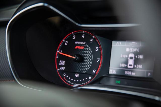 创界Redline版的仪表采用的是双机械+单色液晶屏幕的搭配,造型清晰易读,但科技感不强。RS版的仪表在此基础上增加了红圈、“RS”标识和底纹装饰,更好地突出运动属性,能令人产生强烈的驾驶欲望。