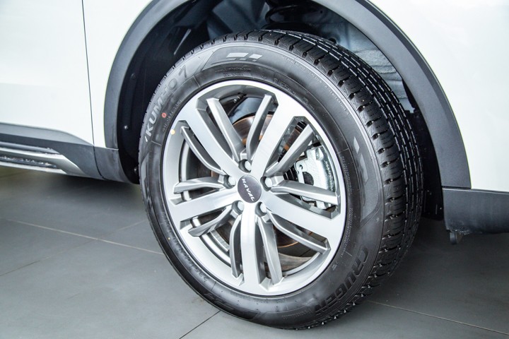实拍车型上采用一套五星式双色轮毂,造型复杂的19英寸铝合金轮圈配合整车比例感协调,配备的235/55 R19锦湖轮胎主打静音、舒适方面性能,并且其价格放在同级车型中也不低,配置很是厚道。