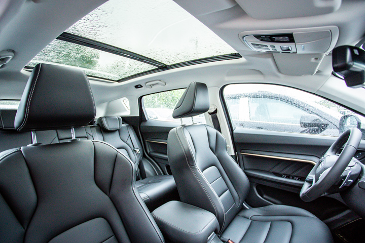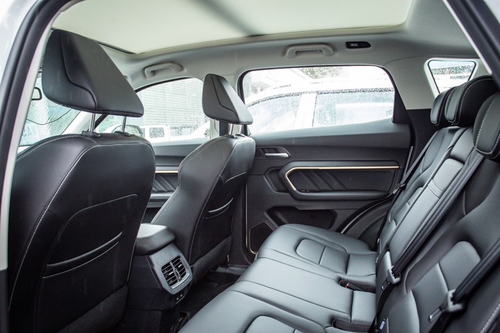 实拍车型装备了黑色真皮座椅,前排座椅造型运动包裹感强,配备的电动调节功能符合哈弗品牌一直以来的高装备水准。而后排座椅也采用较为高级的纹路设计提升视觉效果,足够长的坐垫以及全平的地板乘坐体验在同级别车型中属于优秀水平。