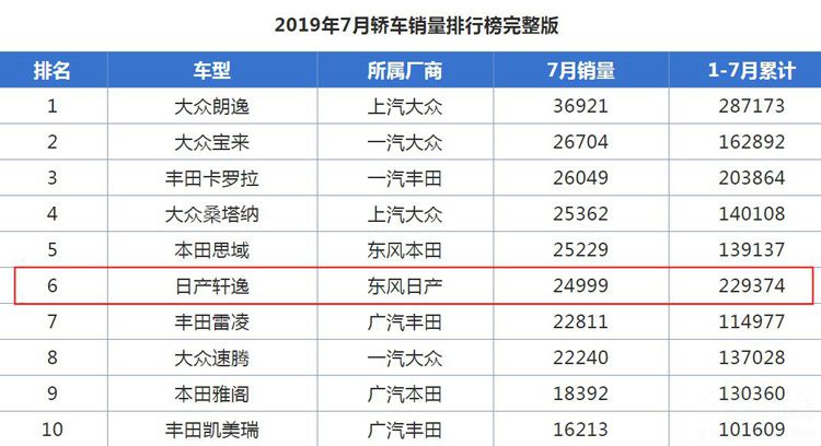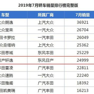可就是这么一款冠军竞争者,同时一度也荣登冠军宝座的轩逸,却在换代当月就栽了——515汽车排行网数据显示,7月新轩逸销量暴跌,销量仅卖出去24,999辆,排名从前三名直接滑落到了第六名。