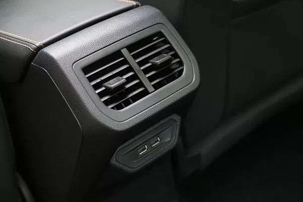 美中不足的是,后排中央地台隆起较大,影响中间乘客乘坐,但是提供了空调出风口和USB接口,空间上有所损失,然而便利性有所提升。