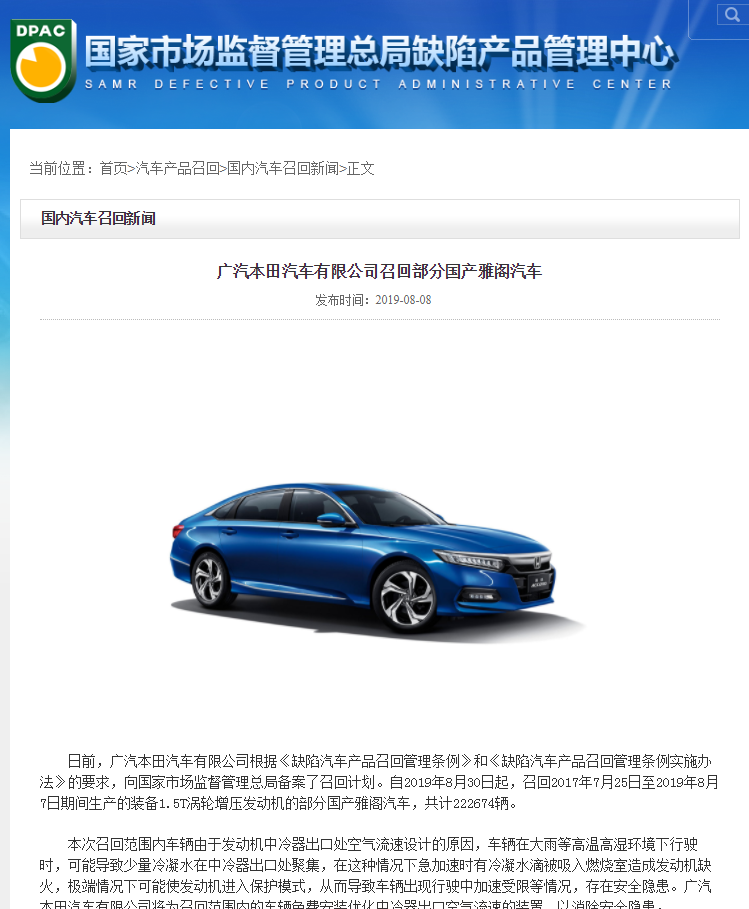 这一次雅阁所面对的问题只是发动机细节方面的问题,总体来说虽然不算是致命缺陷,但是由于故障触发的特殊性,即在恶劣天气才会触发,再加上本身恶劣天气就存在种种安全隐患,所以对车主的威胁还是比较大的。尽管问题只是位于发动机,但是却波及到了该车型所有车辆,数据显示,雅阁汽车自从2017年7月25日开始生产,截止到2019年的8月7日,已经生产了222674辆,而且这些汽车还全部都配备了这种存在问题的1.5T涡轮增压发动机。
