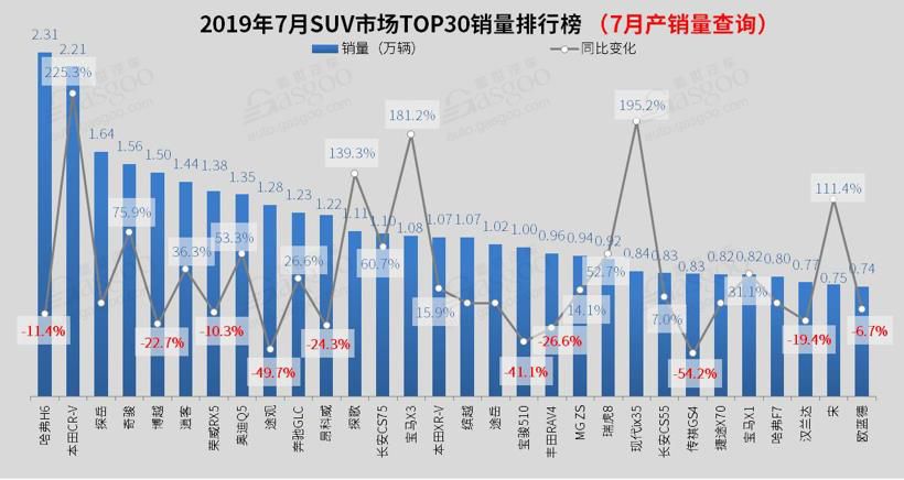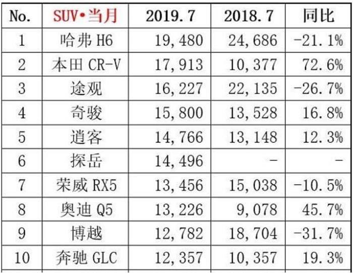 7月份的SUV市场销量榜单,怎么看都像是自主品牌为合资品牌做了嫁衣裳。