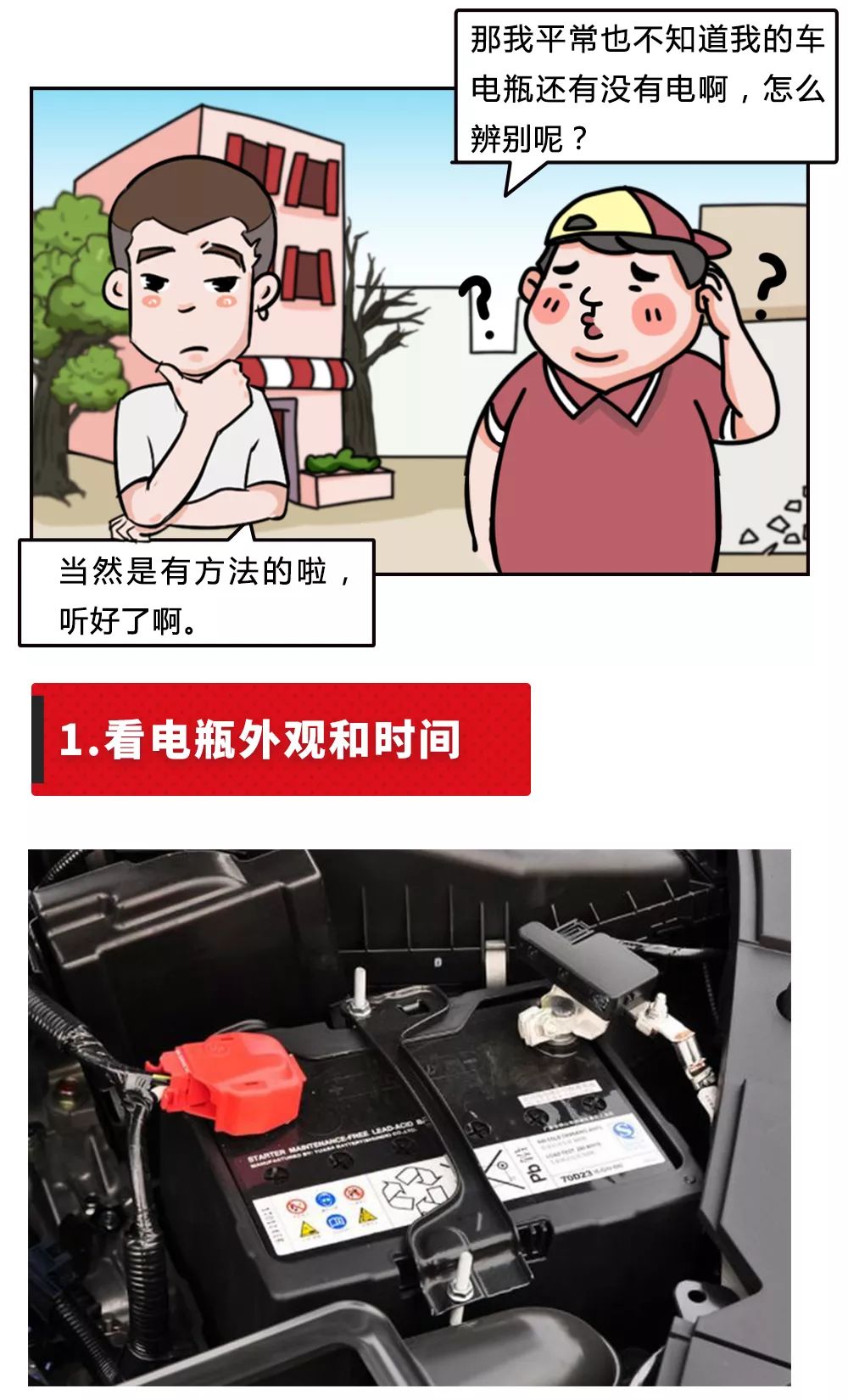 我们在加玻璃水时可以顺便观察电瓶的两侧是否出现明显的变形或鼓包,再者如果接线端子附近出现一些白色或绿色粉末状的电瓶氧化物质,就说明车辆的蓄电池寿命就已经快没了。再简单点也可以从年限来判断其寿命,汽车的电瓶寿命一般在2-3年左右,超过年限最好就更换。
