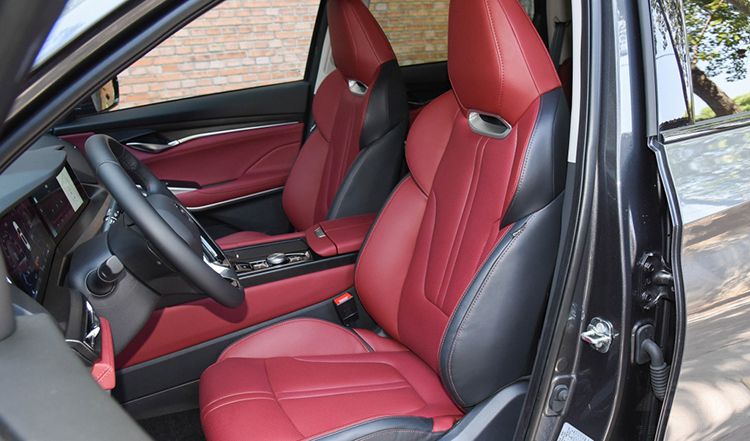 新车内饰同样非常具有吸引力,采用了红色加上黑色的配色设计,搭配亮色装饰板加和红色皮质缝线的工艺,整体给人的感觉非常豪华。全液晶仪表盘与偏向驾驶员一侧的中控屏连成一体,并且采用平底方向盘,拥有非常强的运动氛围。同时,触摸式功能按键、游艇式电子挡杆、贯穿式空调出风口等都体现出了内饰的精致感。