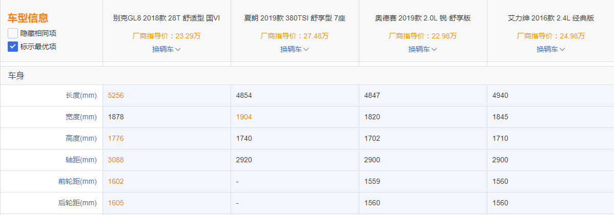 开玩笑开玩笑,由于这两款车的价格,比别克、本田、大众的价格高太多,所以不适合进行对比。言归正传,别克GL8在本田以及大众的MPV车型里,空间优势大吗?咱来看图:
