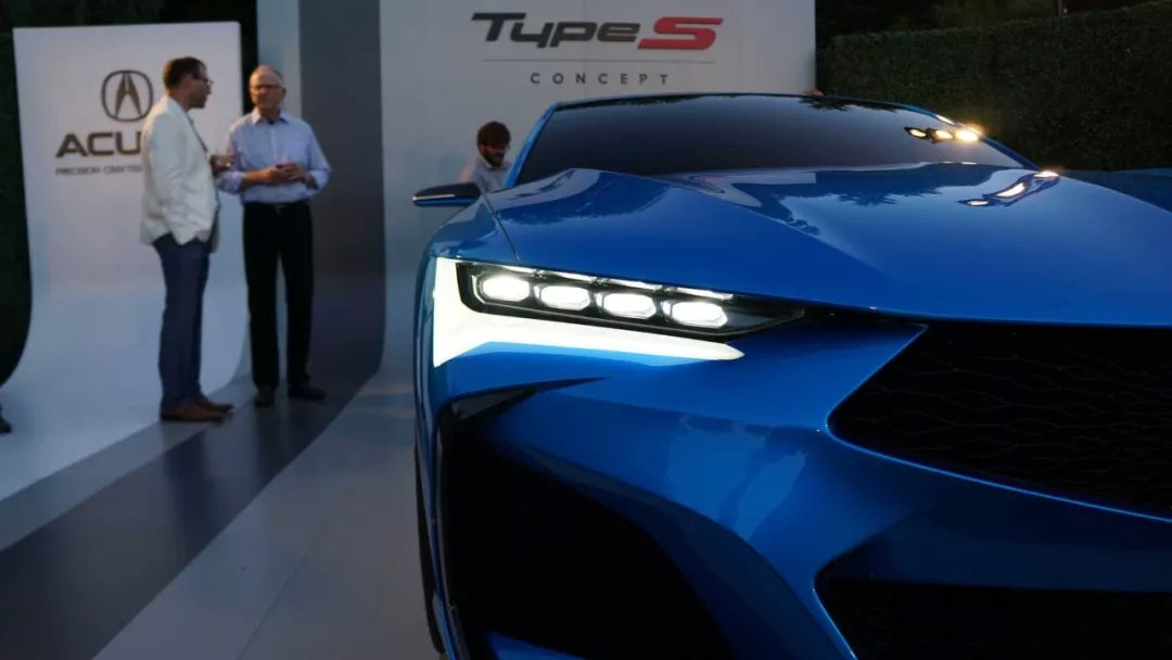 讴歌Type S Concept在圆石滩首次亮相,新车预示了讴歌Type S性能车系的回归,同时也将作为很快到来的TLX Type S车型的预览。新车采用了最新设计语言,车身线条极有力量感,前脸造型大气运动,配备犀利的日行灯设计和矩阵式前大灯组,采用溜背车身设计,概念车采用了无把手车门设计,尾部大灯的LED灯带亮起后与头灯相呼应,配备有双边共四出排气,动力搭载3.5升V6自然进气发动机,最大马力达294匹,配备来自NSX的SH-AWD四驱系统。