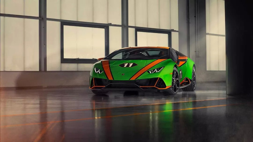 兰博基尼Huracan (配置|询价) Evo GT Celebration,该车是为庆祝Huracan GT3 Evo赛车在Daytona 24小时耐力赛和Sebring 12小时耐力赛中连续两个赛季取得胜利而打造,新车涂装灵感源自Huracan GT3 Evo赛车,采用Verde Egeria green和Arancio Aten orange两种颜色组合,车头和车门上的数字“11”是赛车车牌,外车身还带有“Daytona 24”和“Sebring 12”的专属标识,尾部还印有月桂枝包围的获胜记录图案,车内同样有专属的设计元素和铭牌,新车的动力与现款Huracan Evo相同。新车将全球限量36台,2020年开始交付。