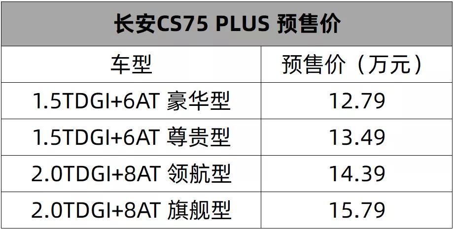 不知道屏幕前的你是否和我一样对长安CS75 PLUS期待已久,长安汽车似乎也听到了我们的心声,终于公布了长安CS75 PLUS的预售价,CS75 PLUS将推出四款车型,预售价格为12.79-15.79万元。