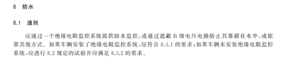 在国标GB/T 18384-2015中要求:电动汽车出厂前需经过模拟清洗、模拟暴雨以及模拟涉水等整车防水实验,保证电动汽车能在大多数极端恶劣环境下的正常、安全使用。