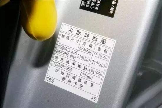 那么标准胎压哪里能看到呢?这个不用担心,厂家都会给出建议胎压,主要在这四个地方能看到。这个需要花点时间去找一下。车辆用户手册、驾驶室车门B柱附近的标签、车辆驾驶座旁的抽屉和加油时油箱盖的背面。大部分车会贴在驾驶室门上,也有些车会在后车门上,还有些车标注在油箱盖内。