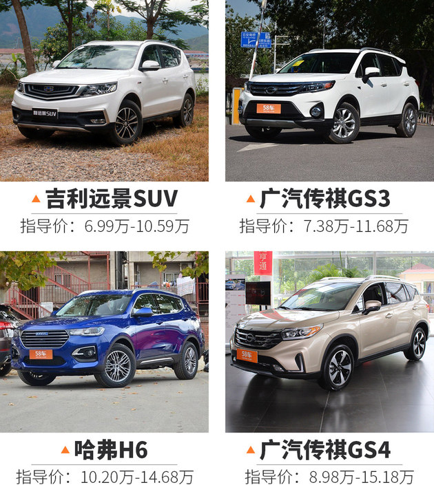 从价格出发,目前这款车官方锁定的竞品主要有吉利远景SUV、广汽传祺GS3 (配置|询价)。从车身尺寸出发,这款车可以与哈弗H6 (配置|询价)、广汽传祺GS4等一较高下。
