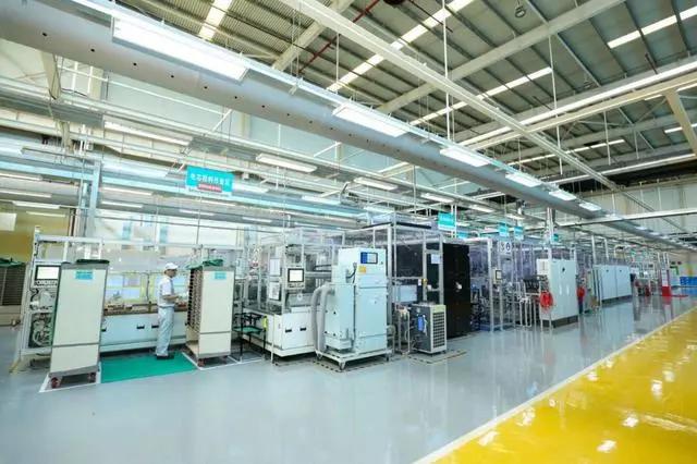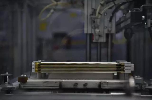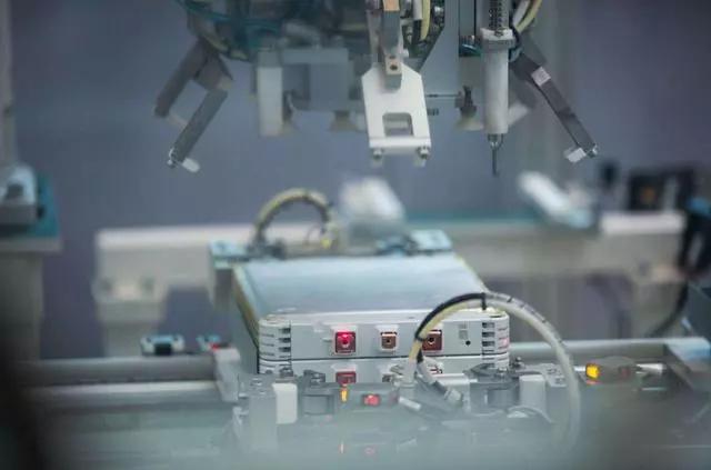本次参观的首站电池生产模块线,是完成CELL(电池单元)到MODULE(电池模块)的生产过程,堪称顶尖工艺集结地。数千平米的生产线,被两排精密的全自动生产设备占据了绝大部分空间,屈指可数的数个工作人员穿梭其中,整条生产线仿佛让人走进了"外科手术室"般,干净、整洁的同时,给人精密、先进的第一印象。