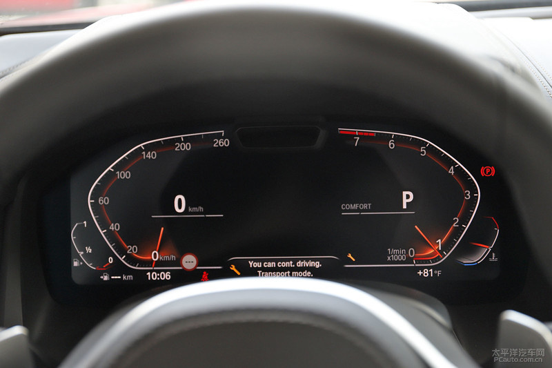 仪表盘采用一款八角形的全液晶仪表盘,具备多种风格显示模式。中控则标配一块12.3 英寸触摸显示屏,系统是宝马最新的iDrive 7.0系统,支持手势和语音,不过实拍车为运输模式,并不能开启。