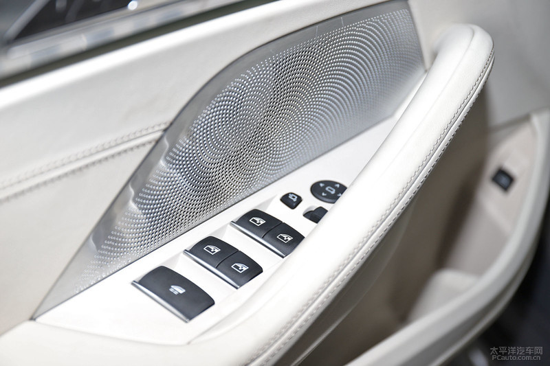 门板的上的豪华细节就是铺面而来了,光是音响的金属面板上就出现了两个Bowers&Wilkins品牌的logo,其余部分则是大面积包覆了真皮和软材质。