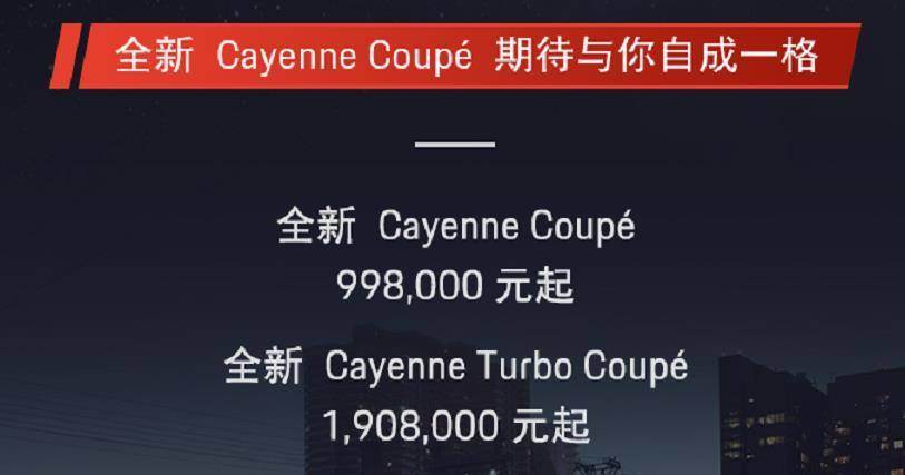 此外,作为占据保时捷全球销量占比较大的中国市场,Cayenne Coupé还专为中国消费者提供了更多的选项,例如车内氛围灯、私密玻璃、空气净化离子发生器,以及后排侧安全气囊等配置。
