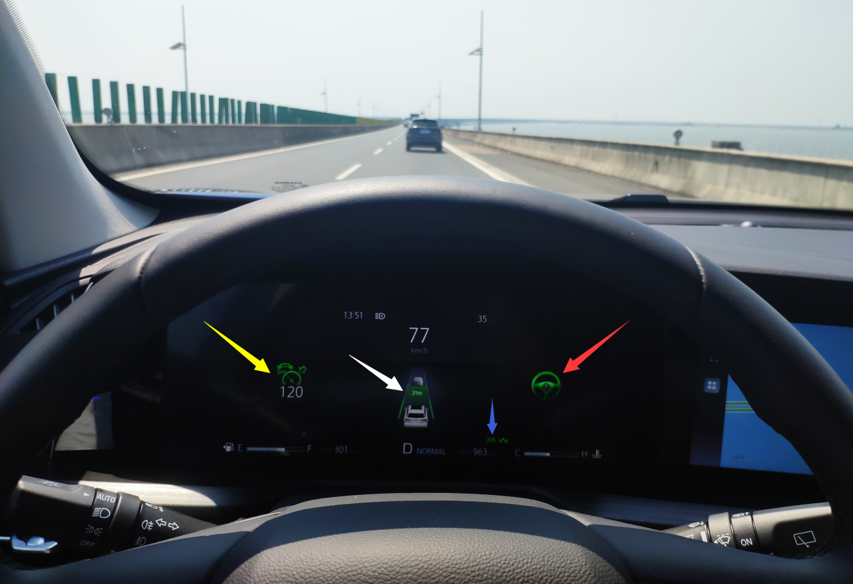 黄色箭头:自适应巡航0-120KM/H全速域设置(速度可以更快)